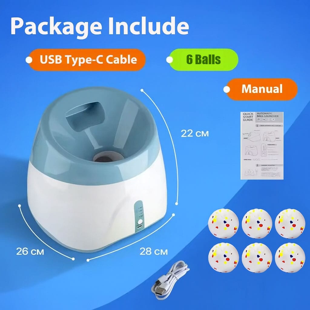 It contains 3 diameter 5.8cm ball,a USB cable,a launcher and a product brochure.